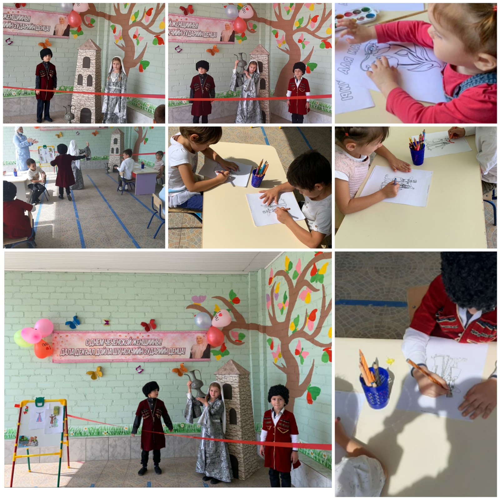 Детьми были представлены разные номера: - стихи, песни, танцы посвящённые Чеченской Женщине. Дети всех групп сделали аппликацию, которая была посвящена мамам, сёстрам и тетям.